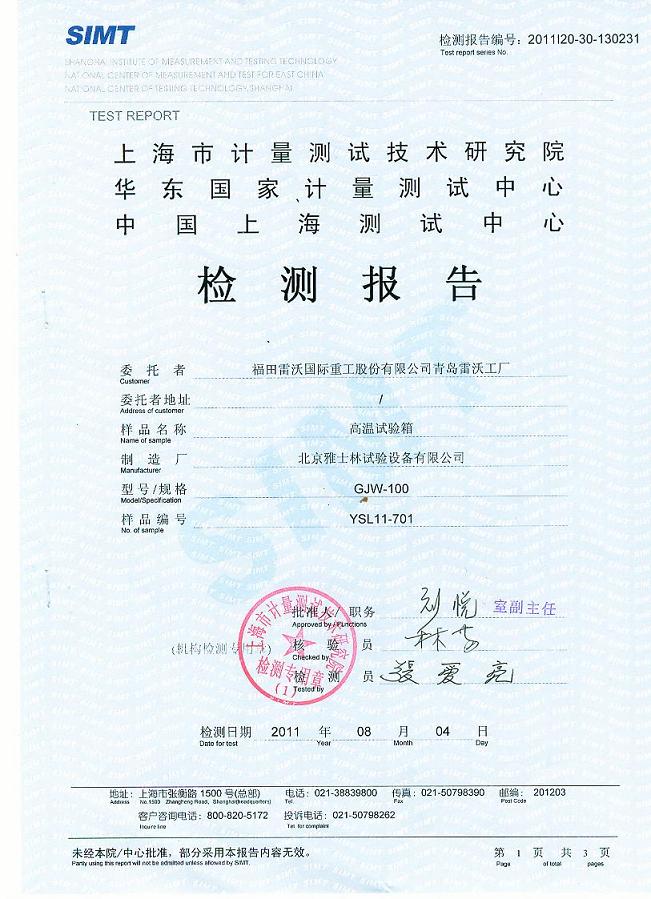 >>高溫試驗(yàn)箱檢測報(bào)告-上海計(jì)量院-福田雷沃