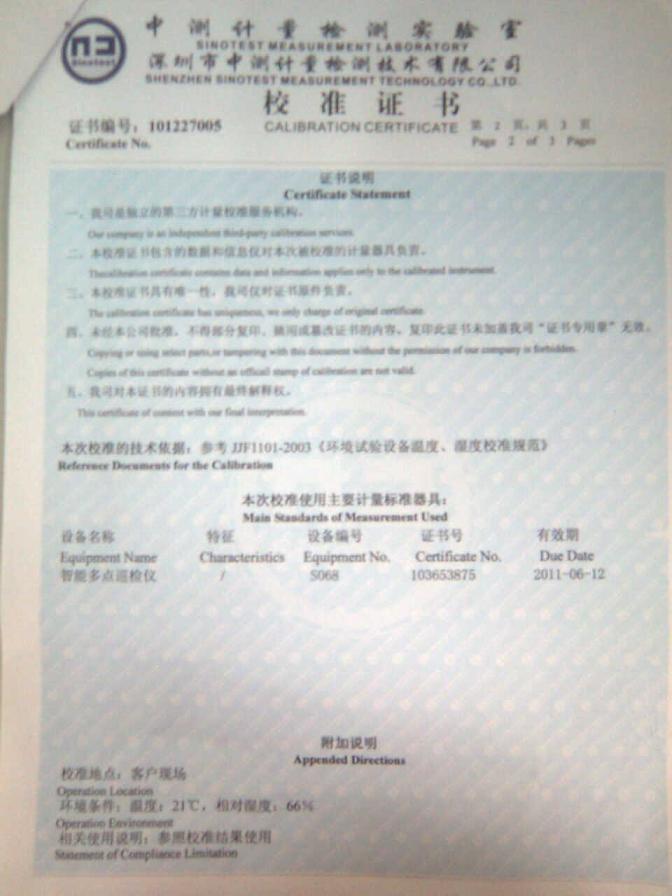 ·高低溫濕熱試驗箱校準證書-深圳中測計量-深圳精銳通
