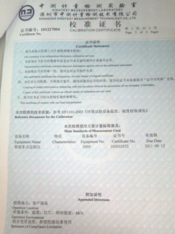 首頁 > 服務中心 > 校準證書