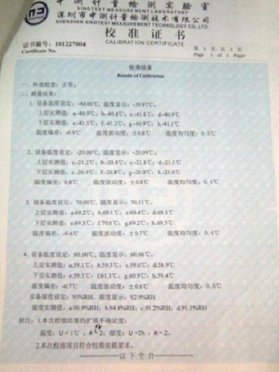 高低溫交變濕熱試驗箱校準證書-深圳中測計量-深圳精銳通