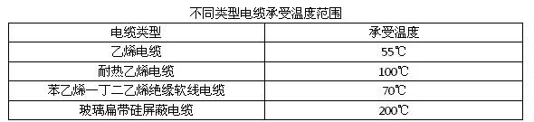 高低溫試驗箱針對需要外接電纜的試樣電纜一定要使用經(jīng)受得住測試條件的電纜,下表是各類電纜和其承受溫度的表格。
