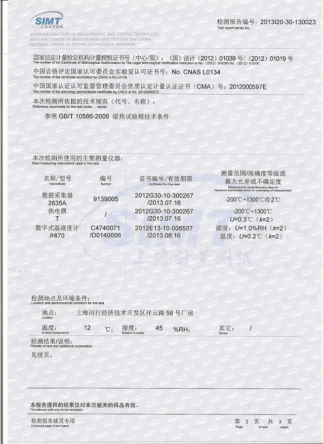 恒溫恒濕試驗箱檢測報告模板下載--上海計量院
