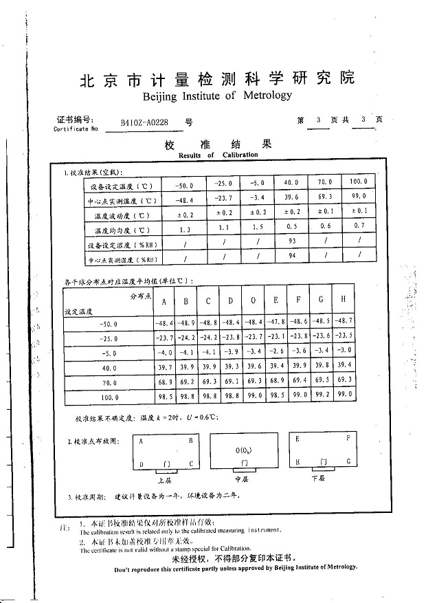 高低溫濕熱試驗箱校準證書模板下載—北京計量院
